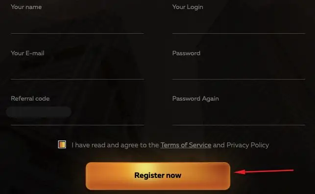 A form will open, in it you should specify standard data. To complete the registration, press the «Register now» button.